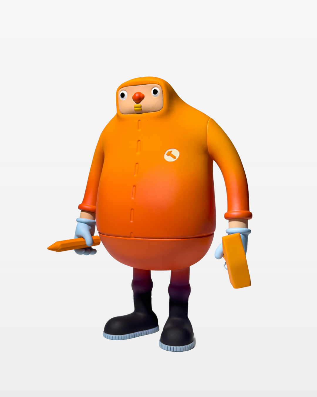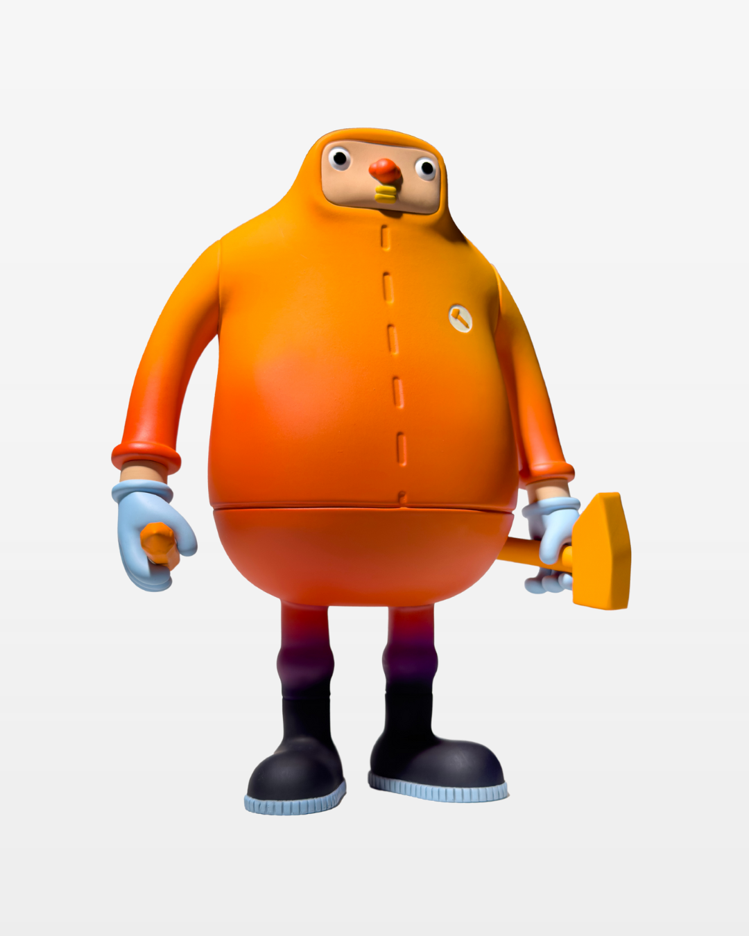 A warm-toned expression of the Craftsman series. SUNSET transitions from deep orange to soft gradients, paired with cool blue gloves and understated tooling. The piece captures the fleeting stillness of golden hour, brought into the quiet focus of a collectible form. Hammer and pencil included.